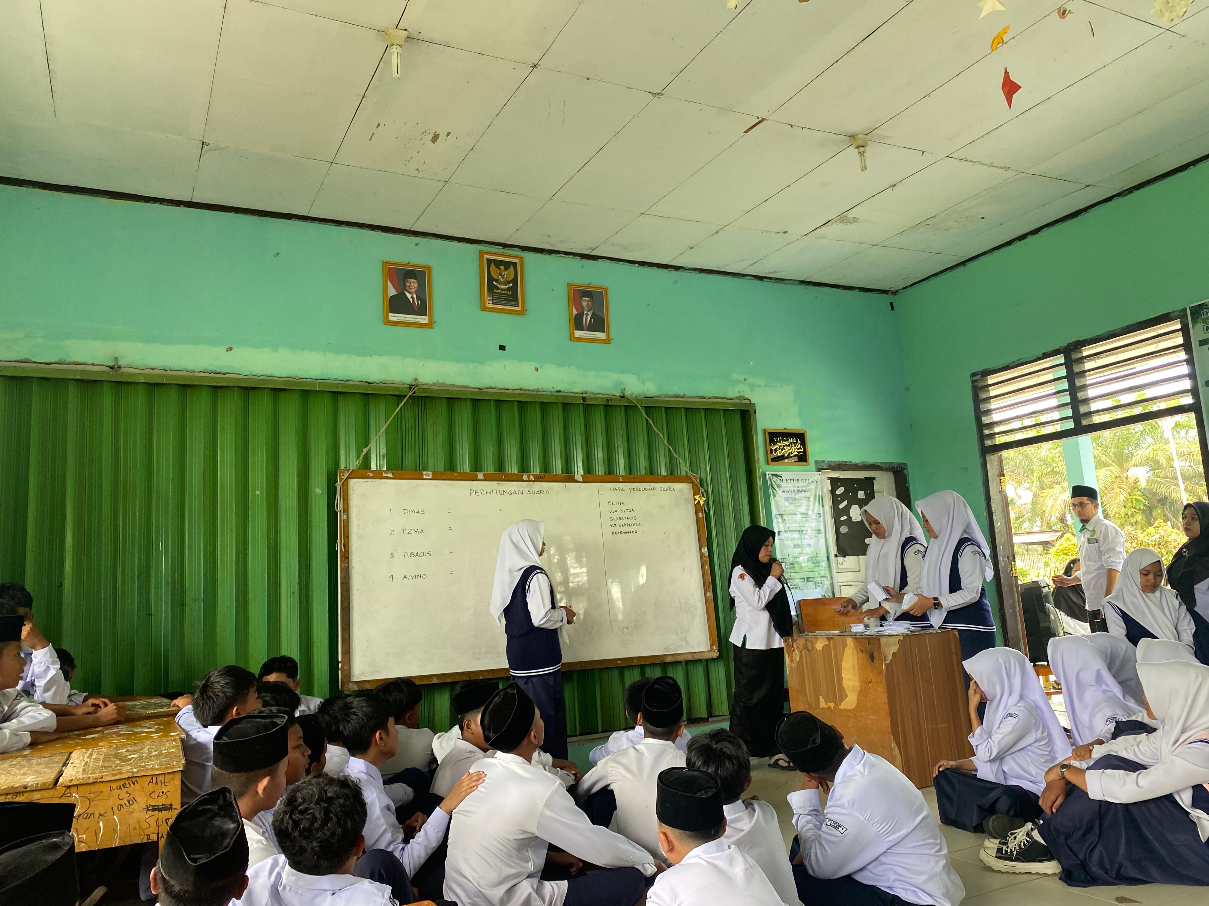 Suasana semakin semarak ketika proses pemungutan suara dimulai. Para siswa berbaris rapi untuk memberikan hak pilihnya, sementara panitia pemilihan bekerja dengan penuh tanggung jawab demi kelancaran jalannya kegiatan. Pemilihan ini tidak hanya menjadi ajang memilih pemimpin siswa, tetapi juga sebagai sarana pembelajaran demokrasi sejak dini. Semua warga madrasah belajar menghargai perbedaan pendapat dan menerima hasil pemilihan dengan lapang dada.
