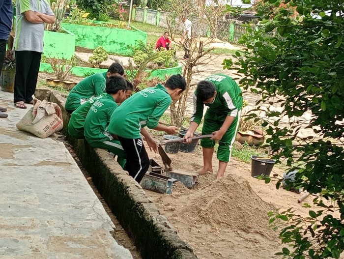 Semangat kebersamaan tampak jelas di wajah para siswa MTsN 6 Bungo saat mereka bergotong royong membuat batako bersama di halaman madrasah. Kegiatan ini bukan sekadar tugas praktik, tetapi juga bentuk nyata kerja sama, kreativitas, dan tanggung jawab dalam pembelajaran berbasis proyek. Dengan penuh antusias, para siswa saling membantu mulai dari menakar bahan, mengaduk campuran semen, hingga mencetak batako menjadi hasil yang rapi dan kuat.