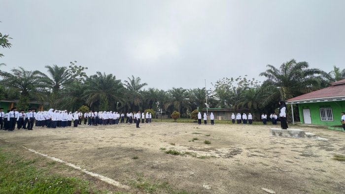 Setiap hari Senin pagi, halaman MTsN 6 Bungo dipenuhi oleh barisan siswa-siswi yang berdiri rapi dengan seragam lengkap, siap melaksanakan upacara bendera merah putih. Di bawah langit biru yang cerah, semangat nasionalisme terpancar dari wajah mereka saat menyanyikan lagu kebangsaan Indonesia Raya dengan penuh khidmat. Suasana khusyuk dan tertib menjadi cerminan disiplin serta rasa hormat terhadap simbol negara.